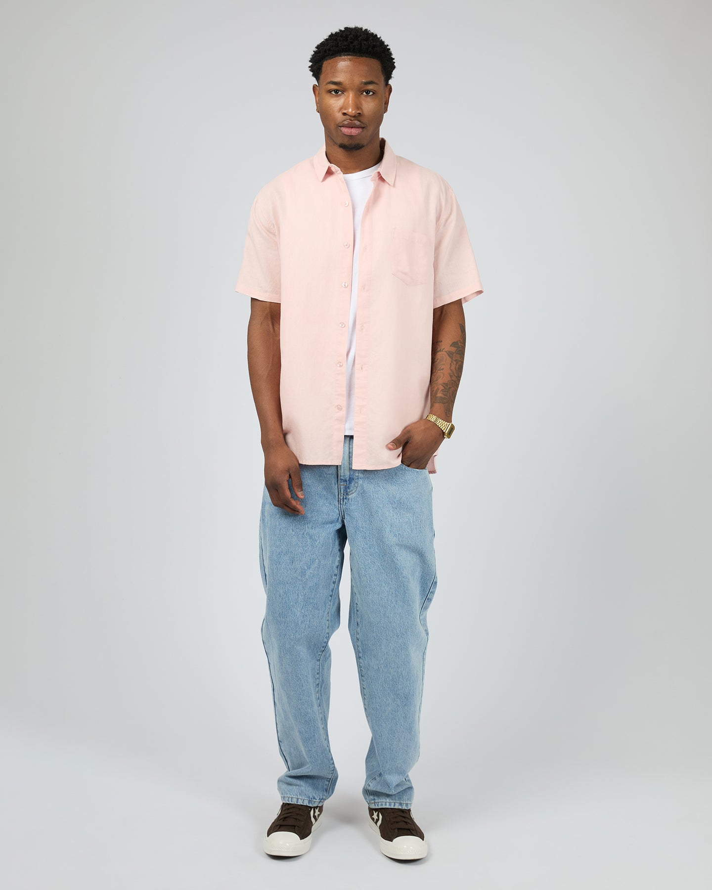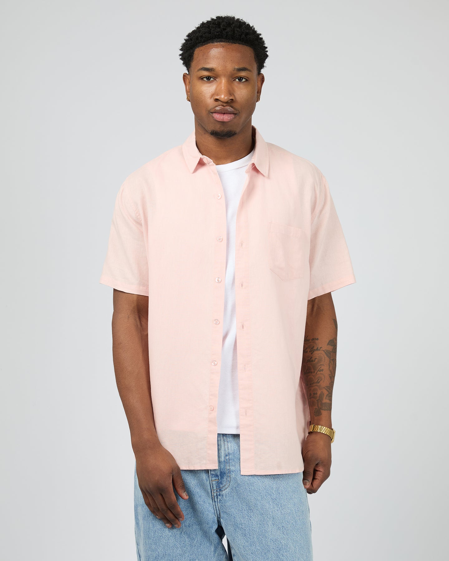 The Linen Short Sleeve Shirt II features a relaxed silhouette enhanced by a collared neckline and short sleeves for breathability and ease. Its button-down front offers versatile styling options, combining classic design with casual comfort.