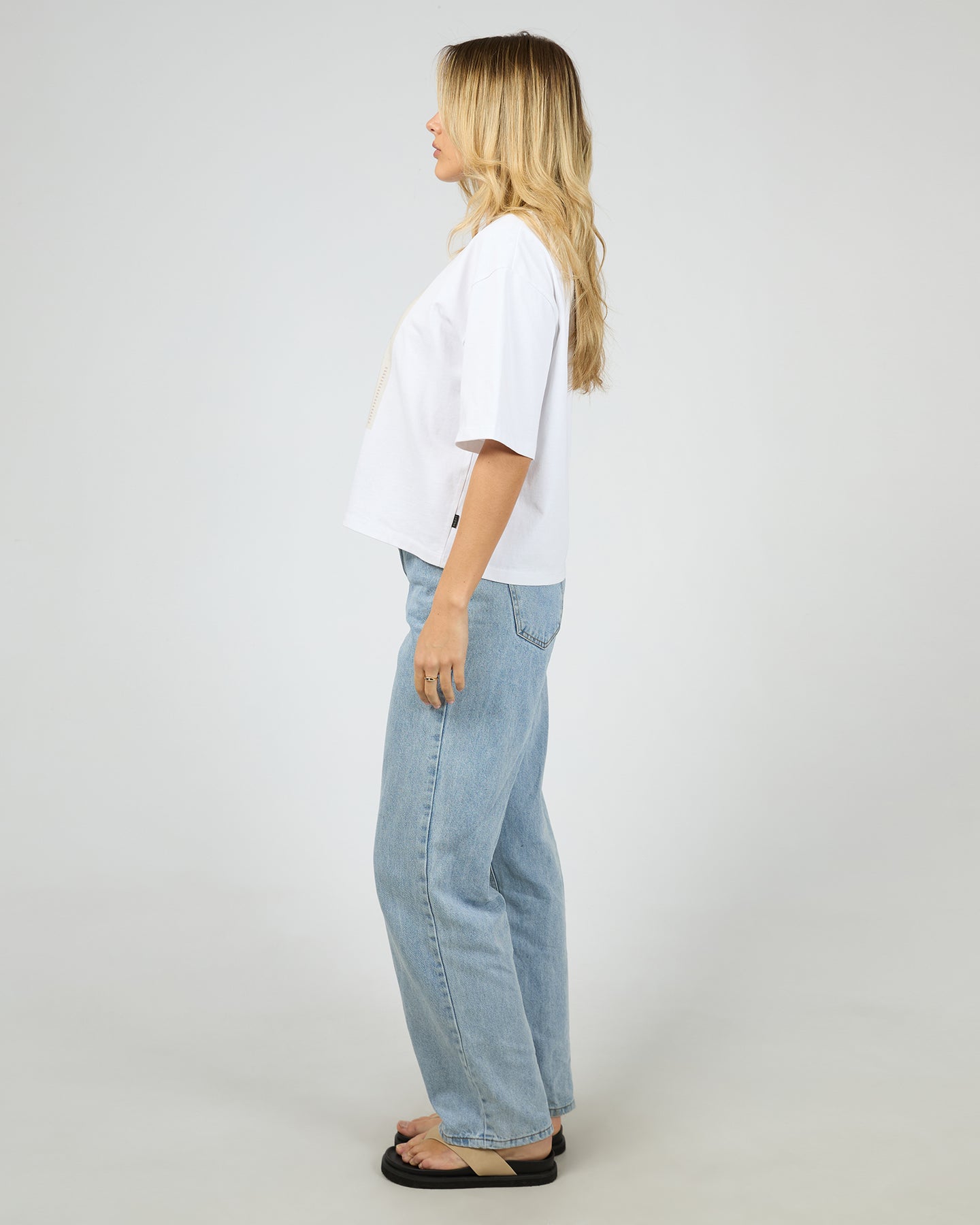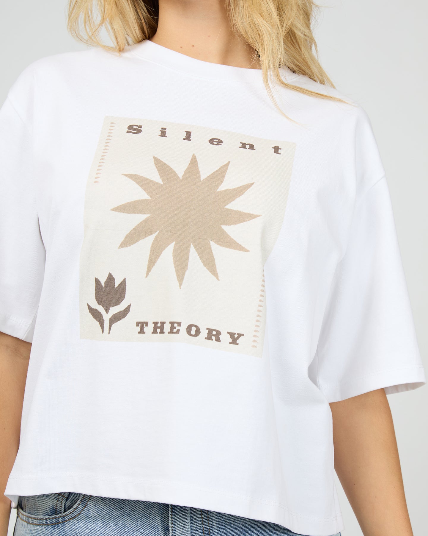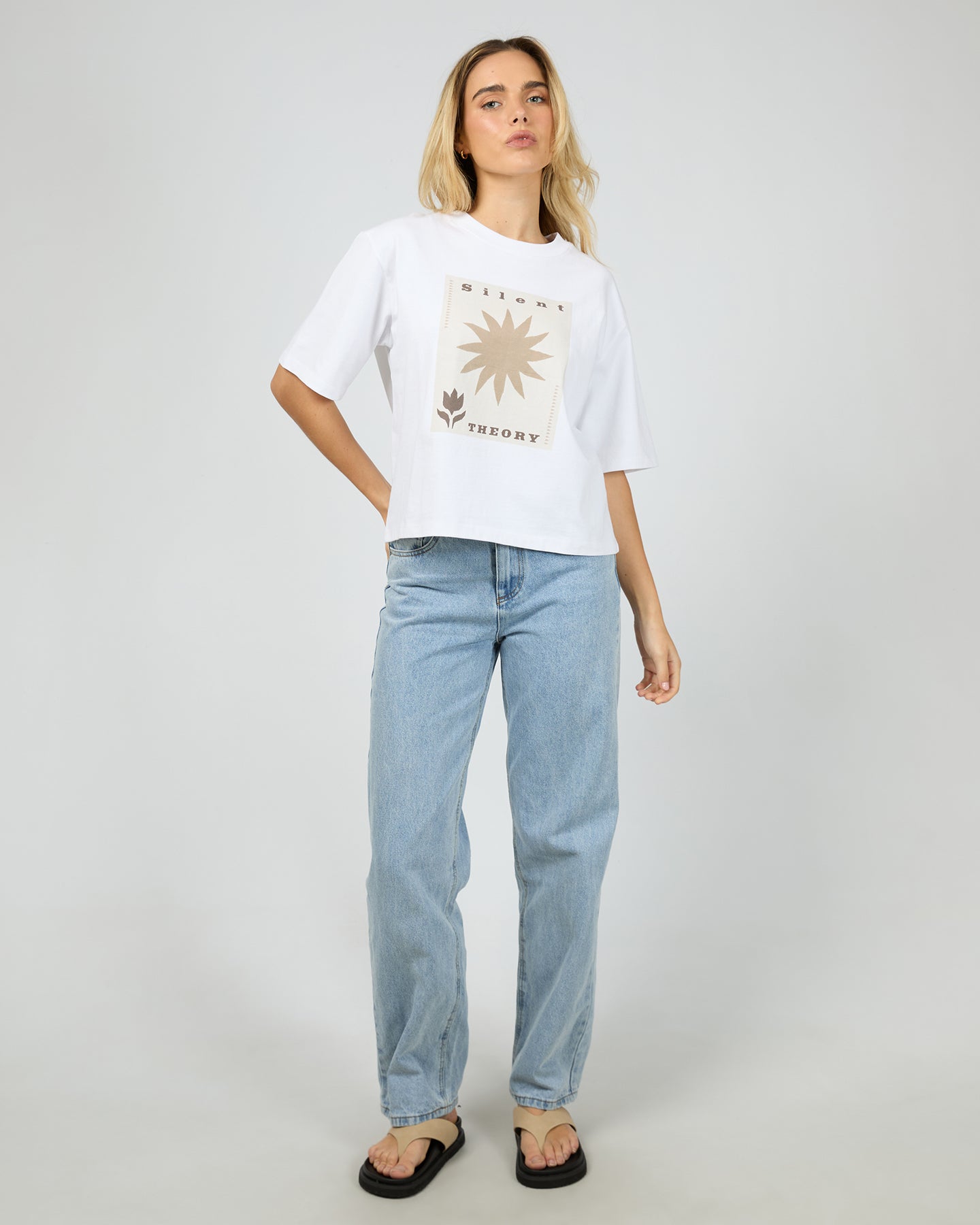 Meet your new on the go tee, the Poster Tee. Made from a heavy weight cotton jersey this tee features a relaxed and shorter length than our usualy oversized tees. Featuring a soft toned front graphic this tee will pair back perfectly with any jean or elastic waist pant for your on the go lifestyle.